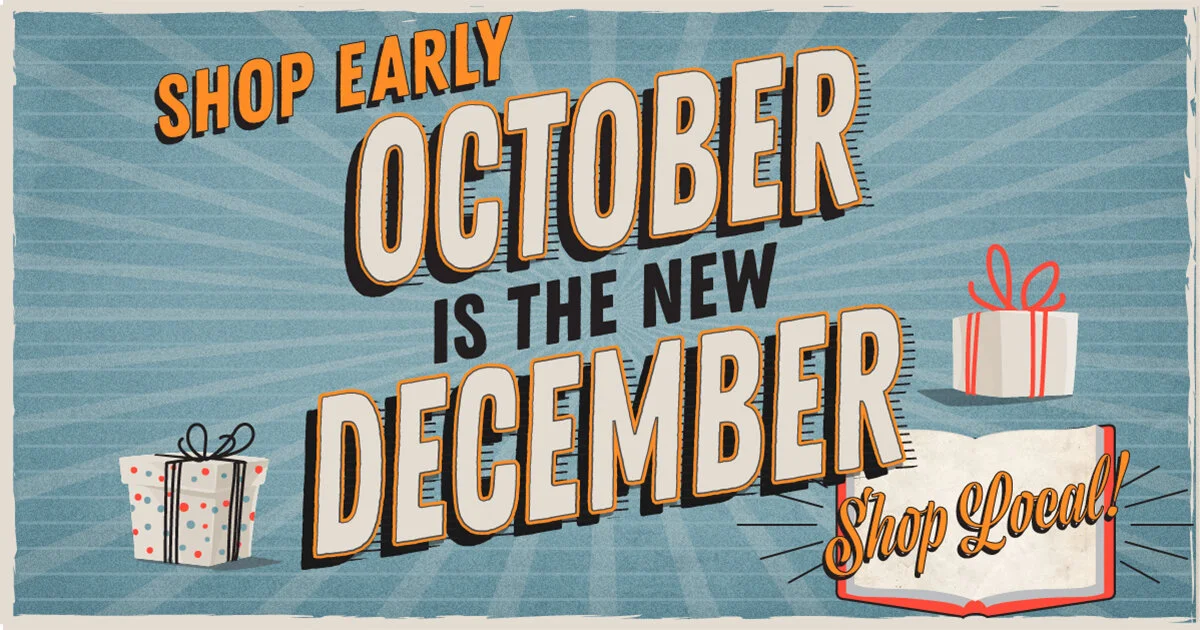 A huge thank you to the American Booksellers Association for creating the October is the New December campaign to boost the Shop Early, Shop Local message. Check out their campaign here.